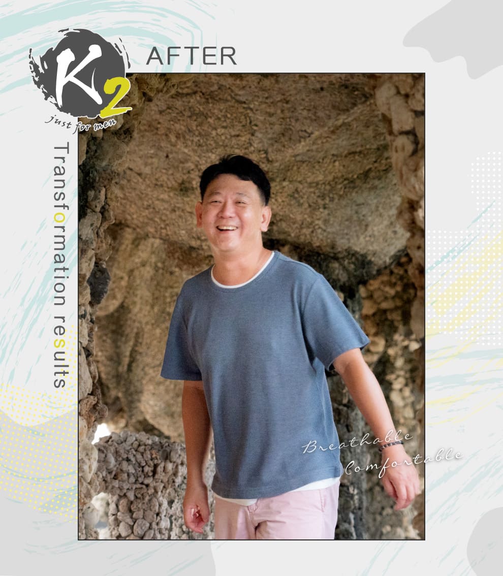 當天改造地點是在高雄田寮,氣溫高達30多度,但即使在這樣的炎熱氣候下,阿棋配戴 K2 髮片後仍感到「完全不悶、不癢、很舒服」。