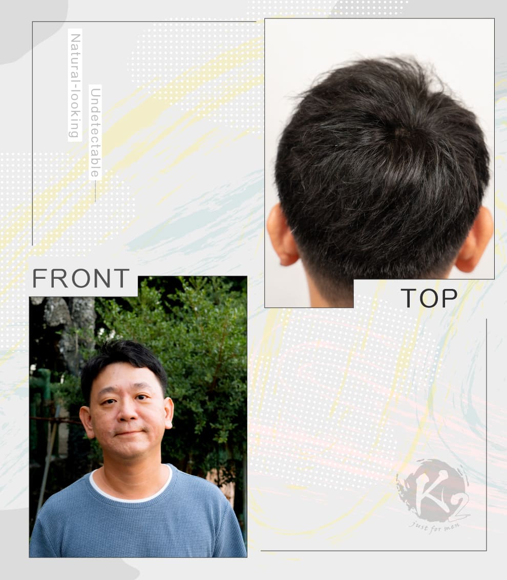 他說:「這髮片真的很自然,連我自己都會忘了它的存在。配戴起來透氣又輕盈,完全不像假髮。滿分10分,我給100分!」