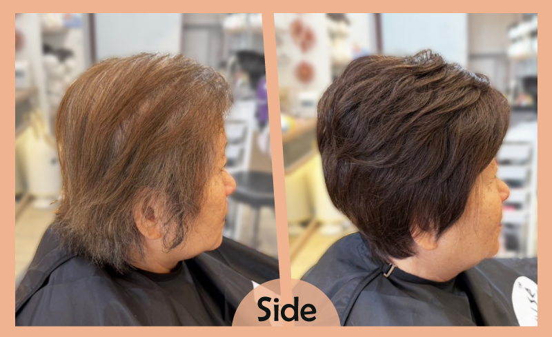 原本假髮的樣子我就已經很喜歡了,沒想到設計師又依照我的臉型和氣質,幫我調整造型成更適合我的樣子,果然專業就是不一樣。戴上後整個人真的年輕好多好多,完全看不出來我已經70歲了,這種自信與開心,是我好久沒有感受到的。